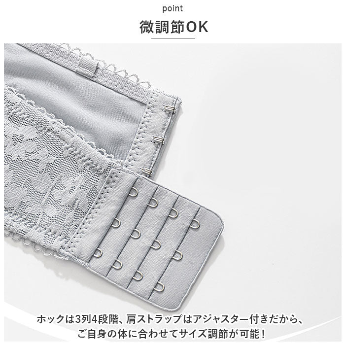 ・ホックは3列4段階、肩ストラップはアジャスター付きだから、ご自身の体に合わせてサイズ調節が可能!