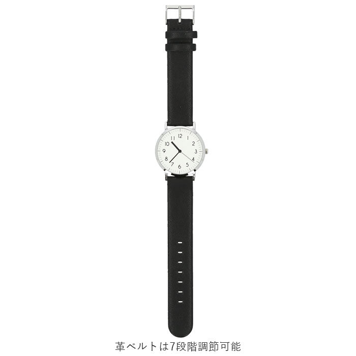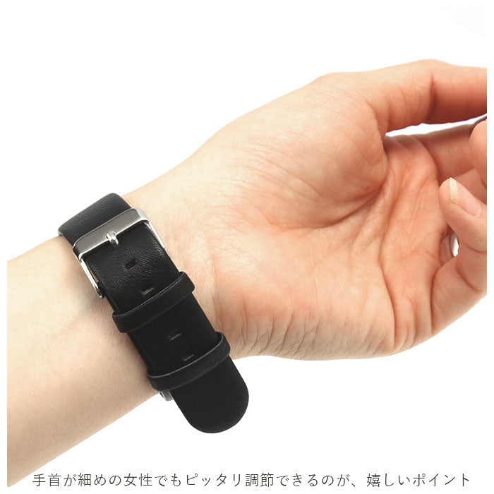 ・革ベルトは7段階調節可能。手首が細めの女性でもピッタリ調節できるのが、嬉しいポイント。