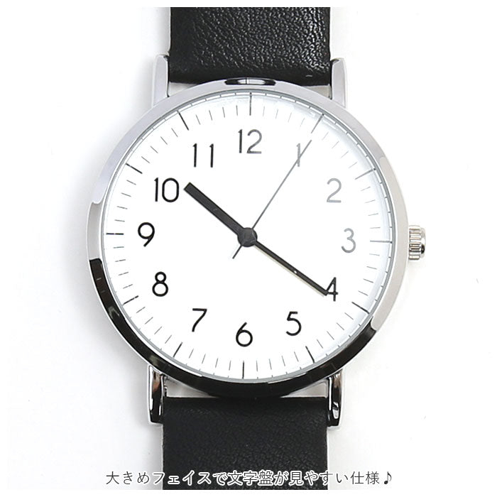 ・大きめフェイスで文字盤が見やすい仕様♪飾りを抑えた分、シンプルな針と文字で読み取りも楽々。
