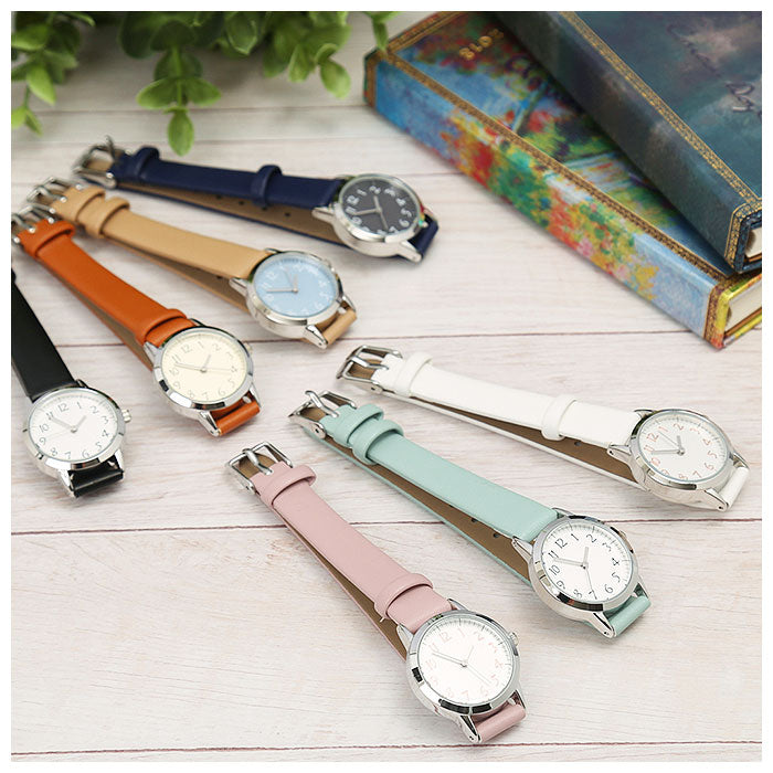 ・定番の丸形文字盤にニュアンスカラーの革ベルトを使用した、大人な雰囲気の腕時計が新登場。