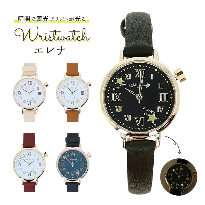 腕時計 レディース かわいい 通販 見やすい アナログ おしゃれ シンプル リストウォッチ 革ベルト 合皮 日本製ムーブメント カジュアル ローマ数字 蓄光 プリント Field work フィールドワーク エレナ GY025 ギフト プレゼント