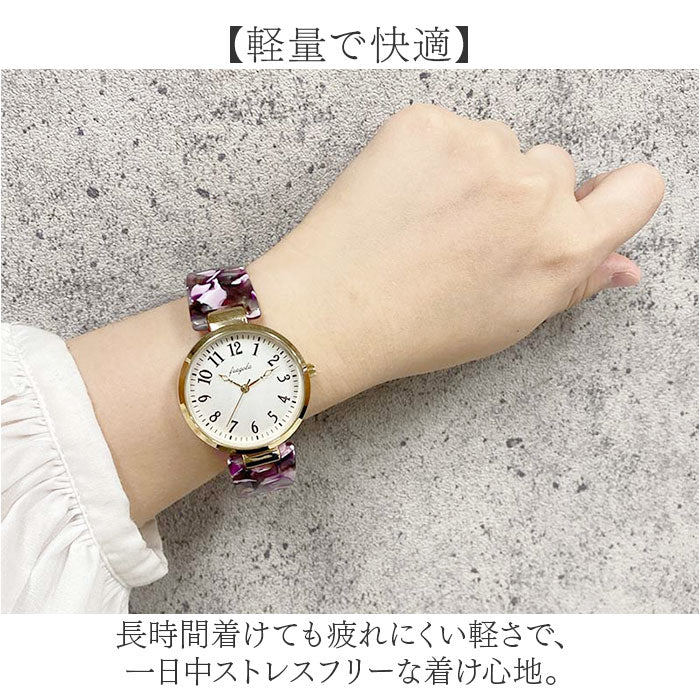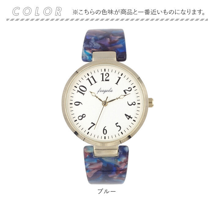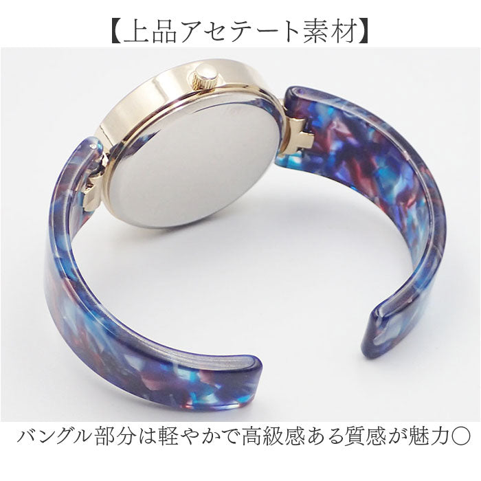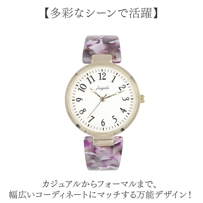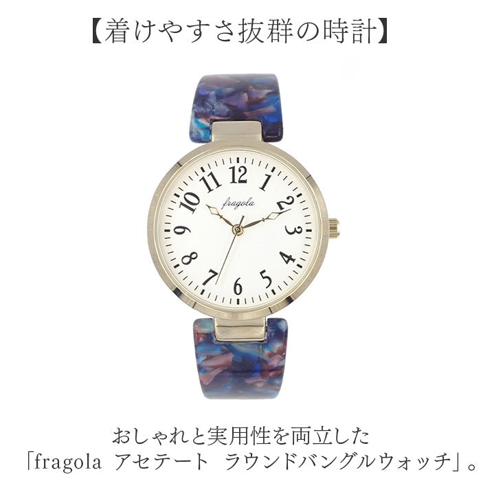 ・おしゃれと実用性を両立した「fragola アセテート ラウンドバングルウォッチ」。