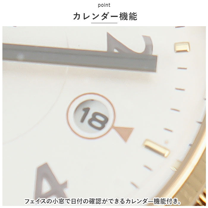 ・フェイスの小窓で日付の確認ができるカレンダー機能付き。