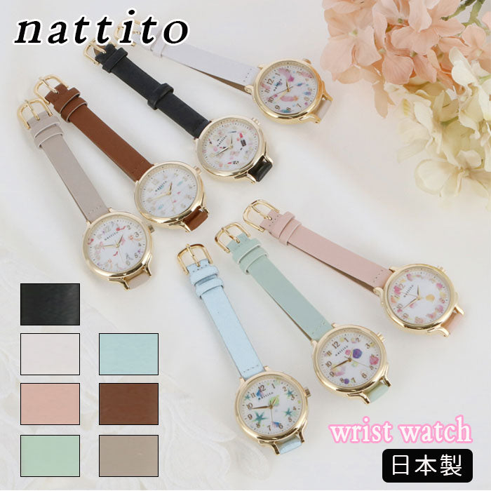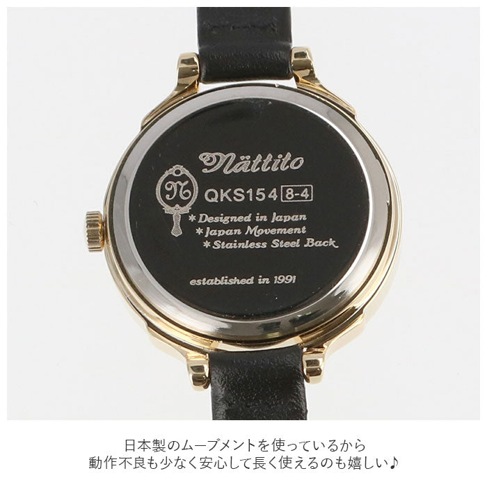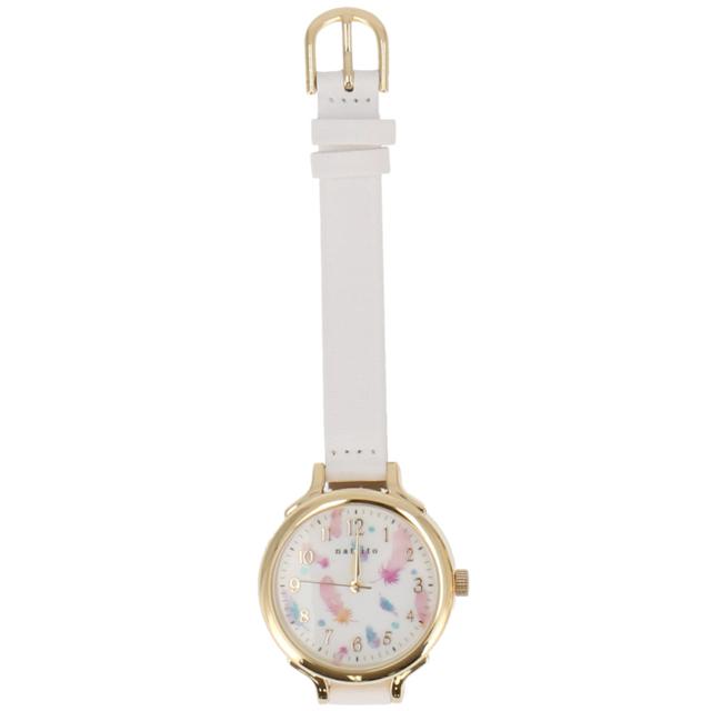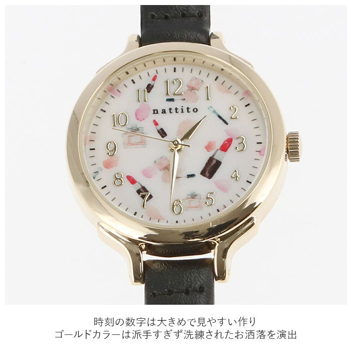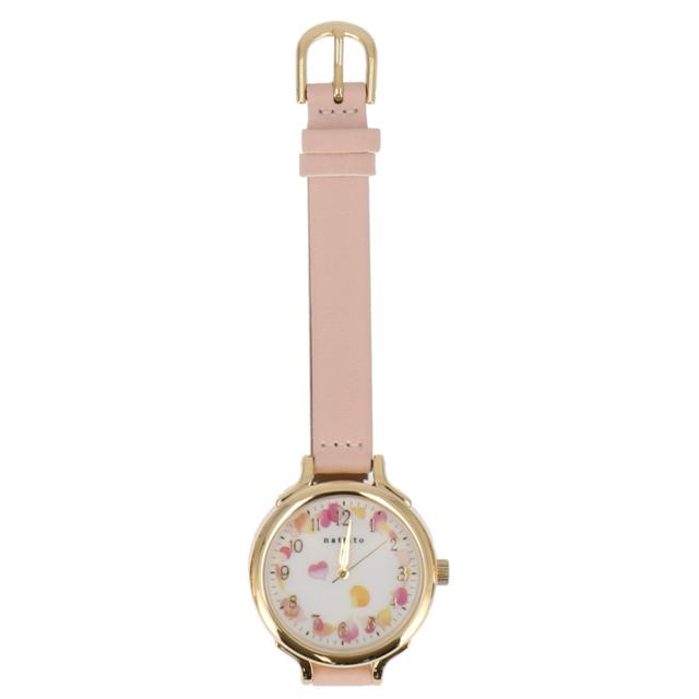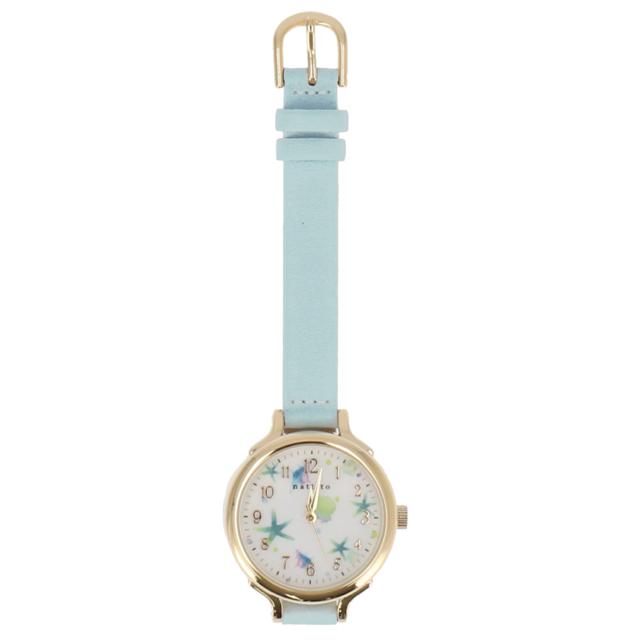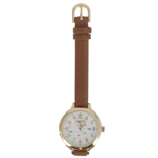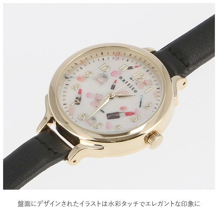 ・細めのバンドは手首をほっそり見せてくれる女性らしいシルエット。盤面にデザインされたイラストは水彩タッチでエレガントな印象に。