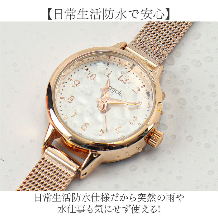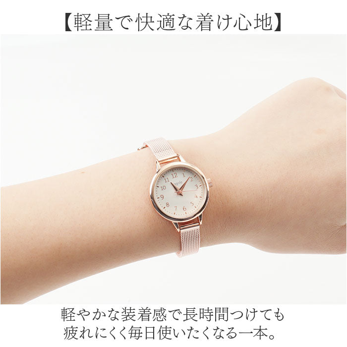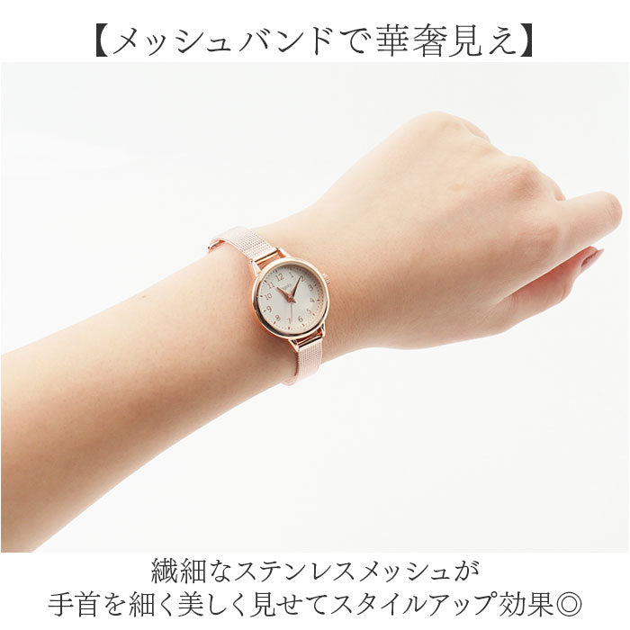 ・メッシュバンドが手元を華奢に見せる「fragola シンプルメッシュバンドウォッチ」。