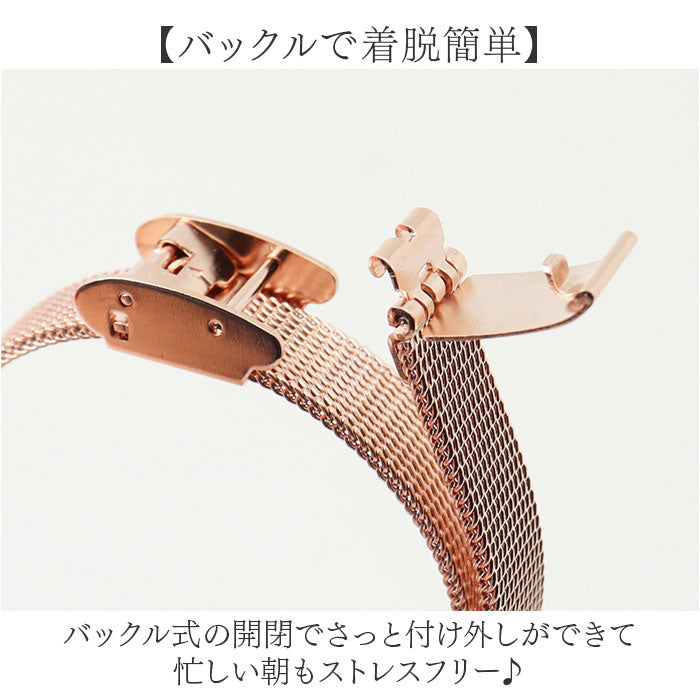 ・繊細なステンレスメッシュが手首を細く美しく見せてスタイルアップ効果◎