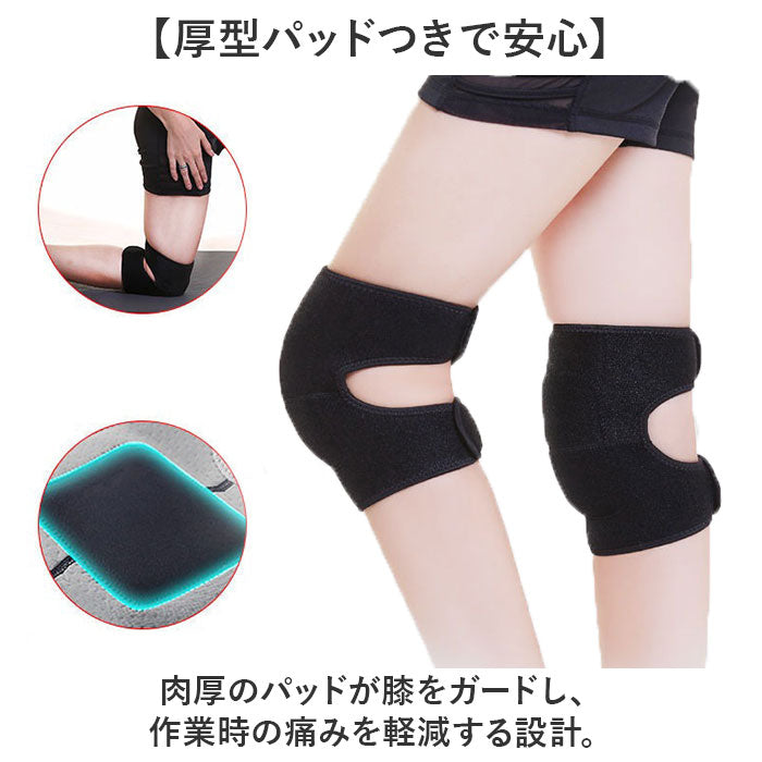 ・肉厚のパッドが膝をガードし、作業時の痛みを軽減する設計。