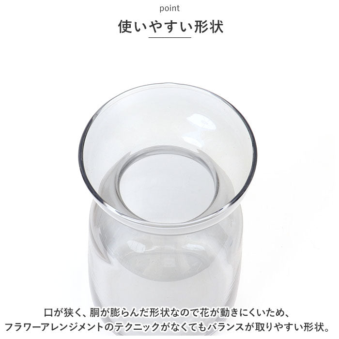 ・口が狭く、胴が膨らんだ形状なので花が動きにくいため、フラワーアレンジメントのテクニックがなくてもバランスが取りやすい形状。お花をざっくりと挿すだけでも華やかさを演出。
