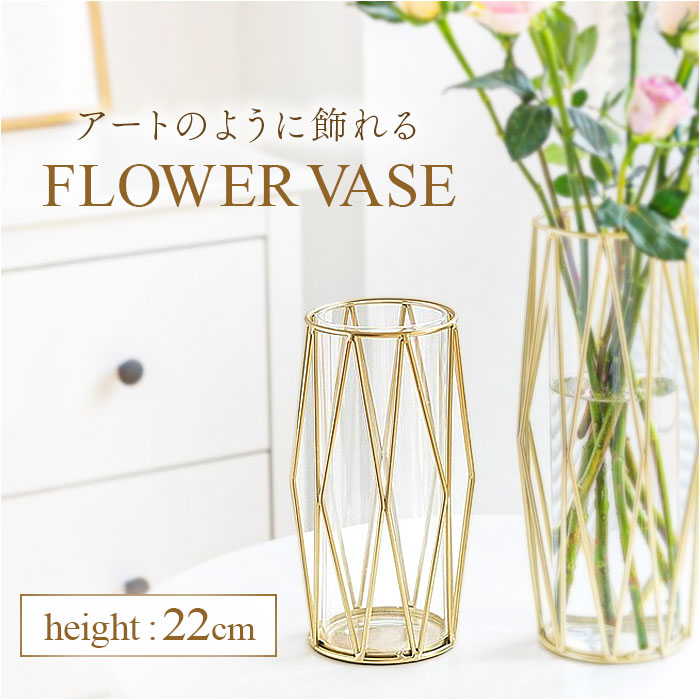 ・メタリックゴールドのラインが美しいフラワーベース。お部屋にモダンなアクセントをプラス