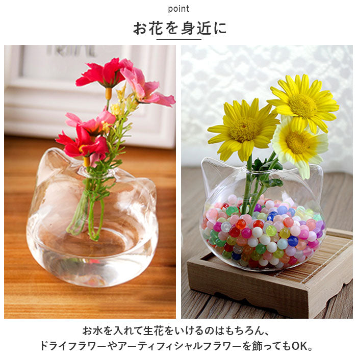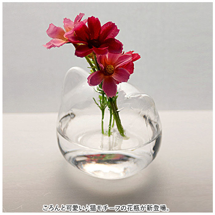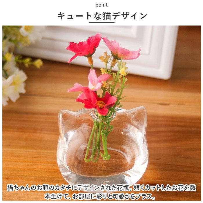 花瓶 一輪挿し ガラス 通販 フラワーベース かびん 花器 ねこ 猫 ネコ 猫型 かわいい おしゃれ 涼しげ クリア 猫雑貨 ねこ雑貨 ネコ雑貨 シンプル リビング ダイニング 寝室 玄関