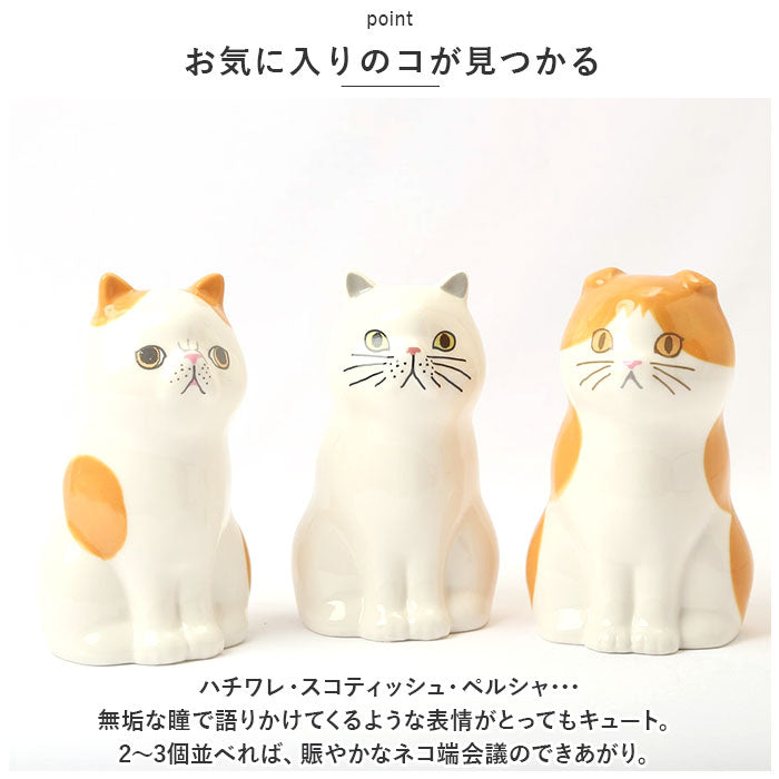 ・ハチワレ・スコティッシュ・ペルシャ・・・無垢な瞳で語りかけてくるような表情がとってもキュート。2~3個並べれば、賑やかなネコ端会議のできあがり。