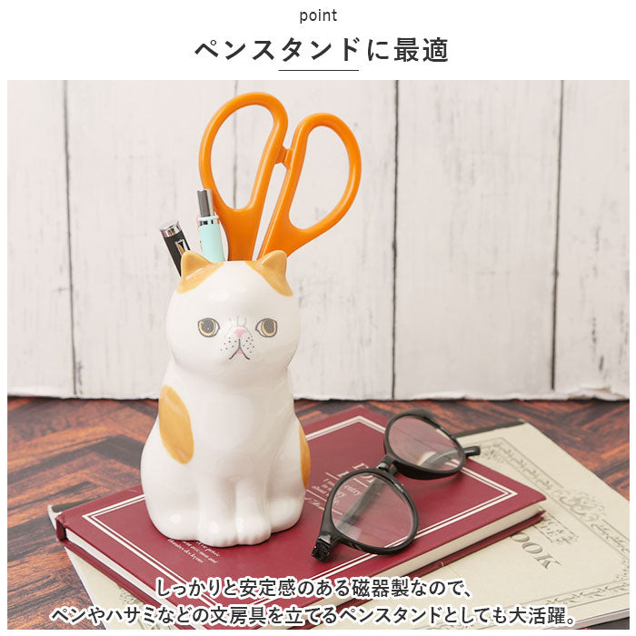 かわいいネコのフラワー&ペンスタンド