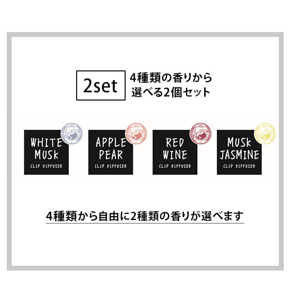 芳香剤 車 おしゃれ 2個セット 通販 カー用品 カーフレグランス エアコン ディフューザー クリップディフューザー バレンタインデー プレゼント ドライブ ジョンズブレンド ジョンブレ 香り フレグランス ギフト ホワイトムスク アップルペアー ムスクジャスミン