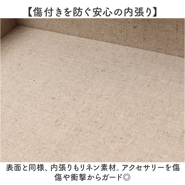 ・表面と同様、内張りもリネン素材。アクセサリーを傷傷や衝撃からガード◎