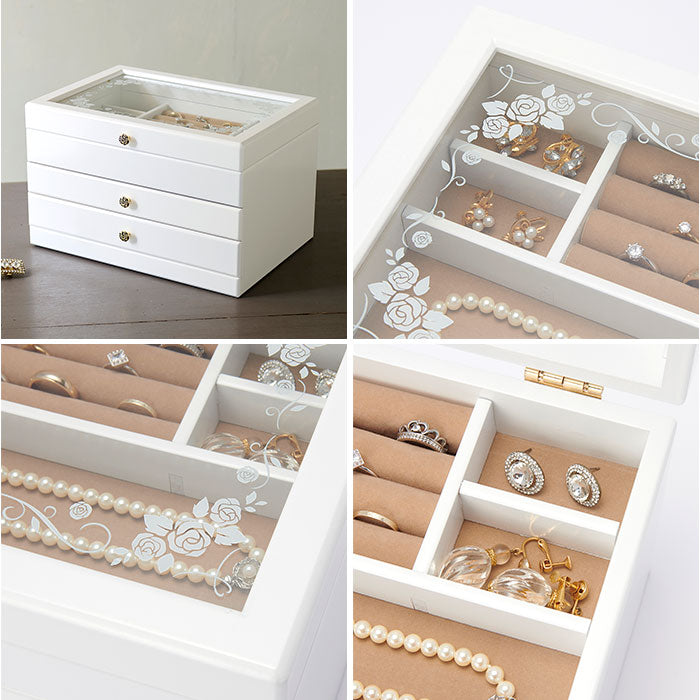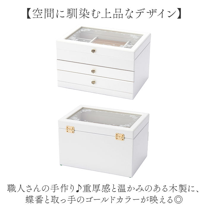 茶谷産業 ジュエリーボックス 通販 日本製 ジュエリーケース 木製 ジュエルケース アクセサリーケース アクセサリー 収納 アクセサリーボックス 引き出し チェスト 3段 指輪 リング