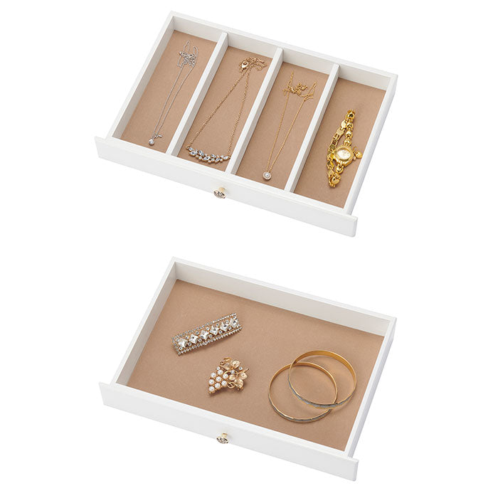・2段目は仕切り付きスペース、3段目は完全フリー。バングルや腕時計などもざっくりと。