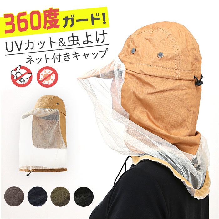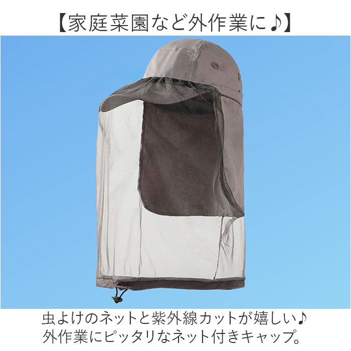・虫よけのネットと紫外線カットが嬉しい♪外作業にピッタリなネット付きキャップ。