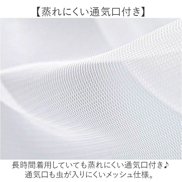・長時間着用していても蒸れにくい通気口付き♪通気口も虫が入りにくいメッシュ仕様。