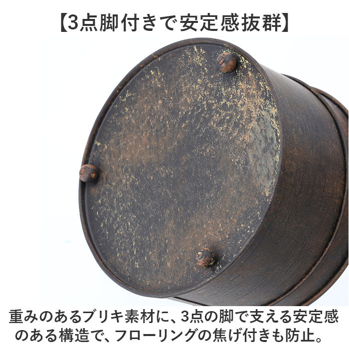 ・重みのあるブリキ素材に、3点の脚で支える安定感のある構造で、フローリングの焦げ付きも防止。