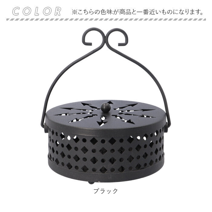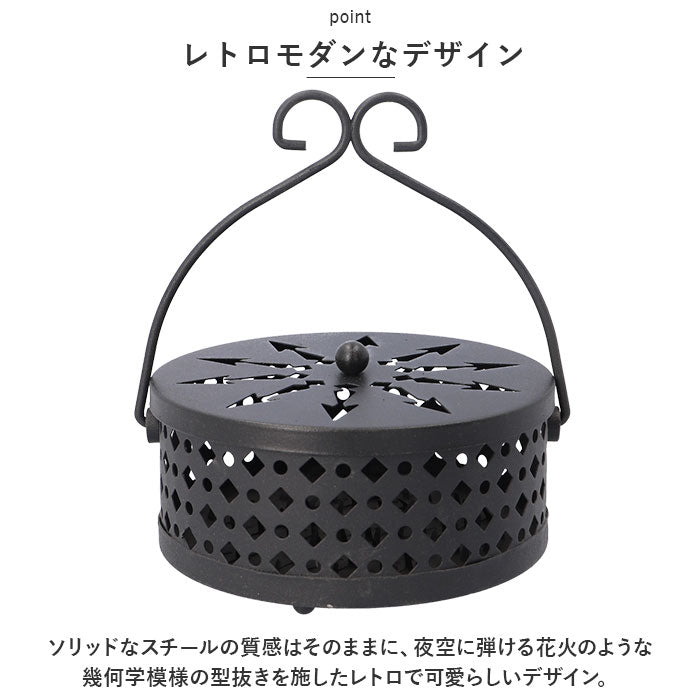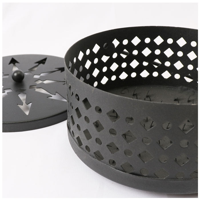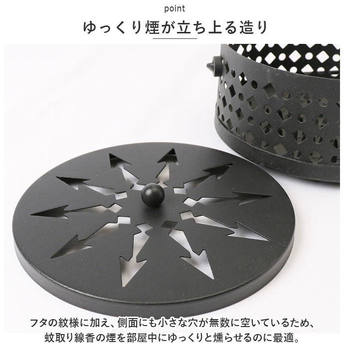 ・フタの紋様に加え、側面にも小さな穴が無数に空いているため、蚊取り線香の煙を部屋中にゆっくりと燻らせるのに最適。