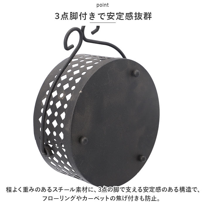 ・程よく重みのあるスチール素材に、3点の脚で支える安定感のある構造で、フローリングやカーペットの焦げ付きも防止。