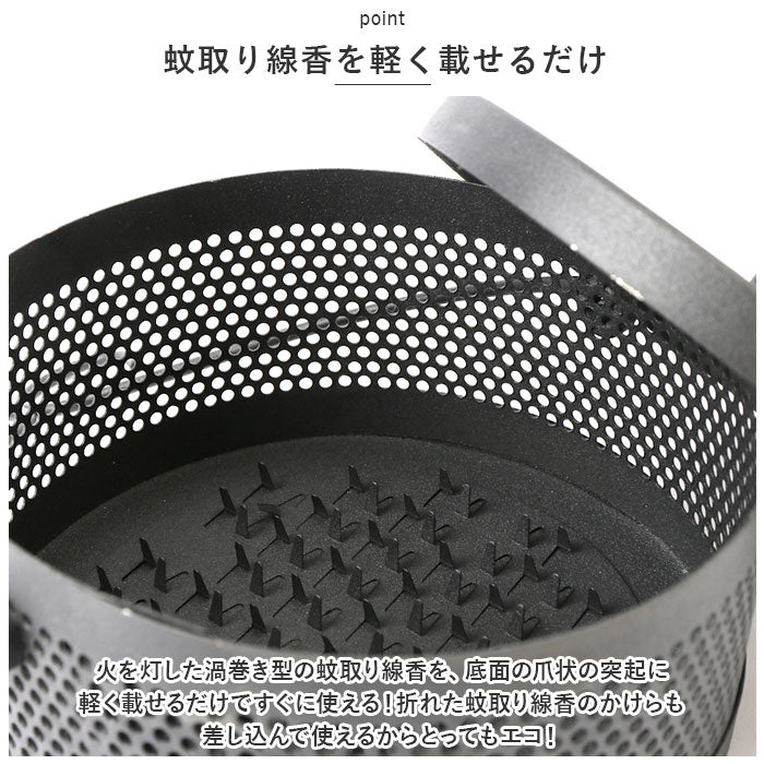 ・火を灯した渦巻き型の蚊取り線香を、底面の爪状の突起に軽く載せるだけですぐに使える!折れた蚊取り線香のかけらも差し込んで使えるからとってもエコ!