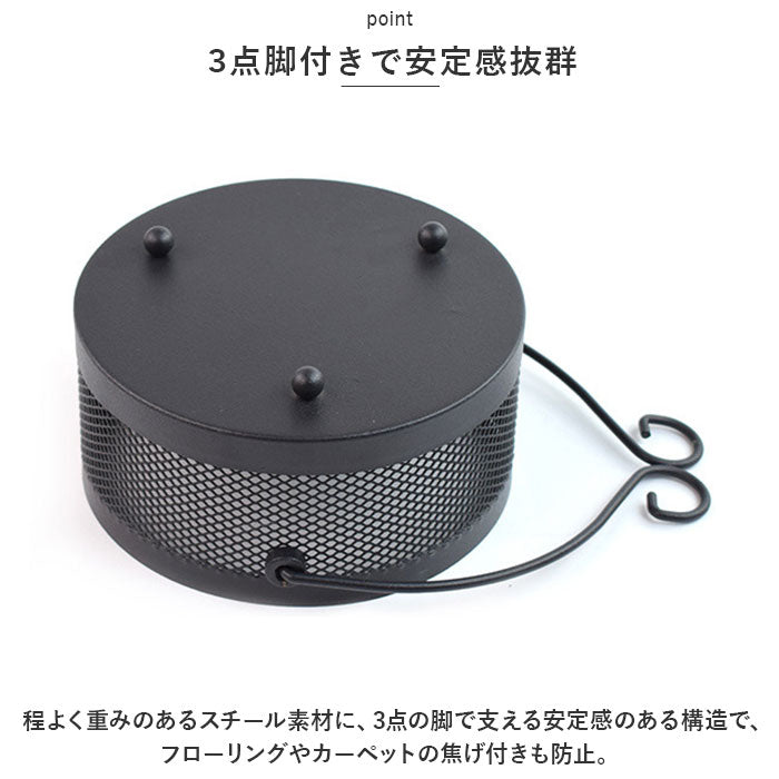 ・程よく重みのあるスチール素材に、3点の脚で支える安定感のある構造で、フローリングやカーペットの焦げ付きも防止。