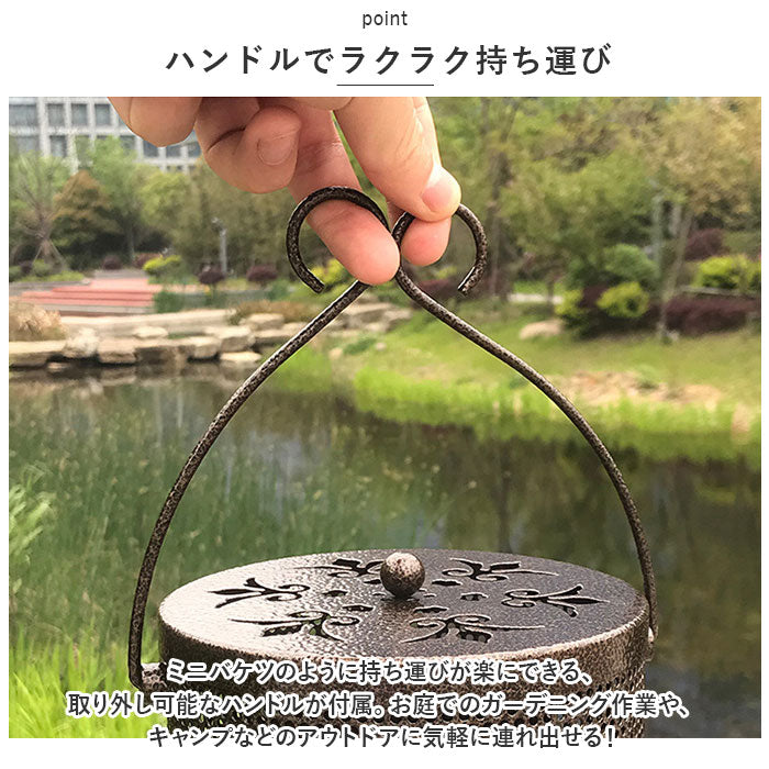 ・ミニバケツのように持ち運びが楽にできる、取り外し可能なハンドルが付属。お庭でのガーデニング作業や、キャンプなどのアウトドアに気軽に連れ出せる!