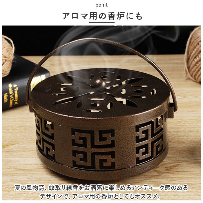 ・夏の風物詩、蚊取り線香をお洒落に楽しめるアンティーク感のあるデザインで、アロマ用の香炉としてもオススメ。