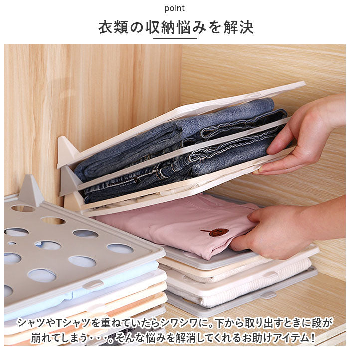 ・シャツやTシャツを重ねていたらシワシワに。下から取り出すときに段が崩れてしまう・・・。そんな悩みを解消してくれるお助けアイテム!