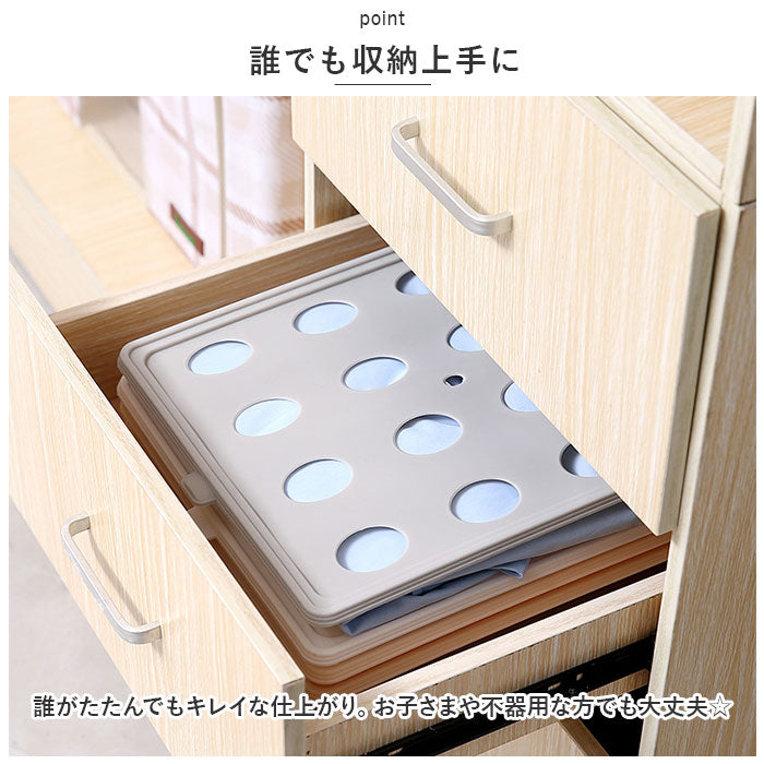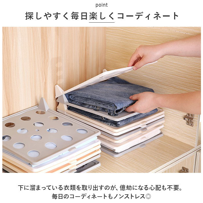 ・たたんだ衣類をボードの上にセットするだけでOK。同じように重ねていけば、下段や中段にある衣類も崩さずキレイに、取り出しスムーズ。