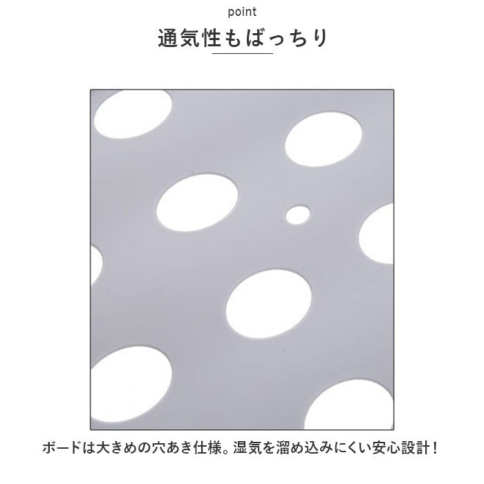 ・ボードは大きめの穴あき仕様。湿気を溜め込みにくい安心設計!