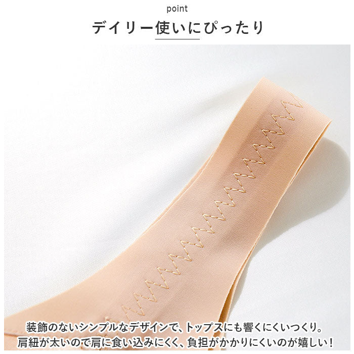 ・装飾のないシンプルなデザインで、トップスにも響くにくいつくり。肩紐が太いので肩に食い込みにくく、負担がかかりにくいのが嬉しい!