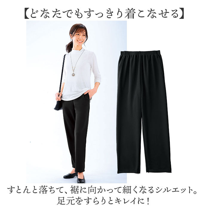 ・シンプルなパンツに見えて、とっても便利◎「快適裾ファスナー付きパンツ」。