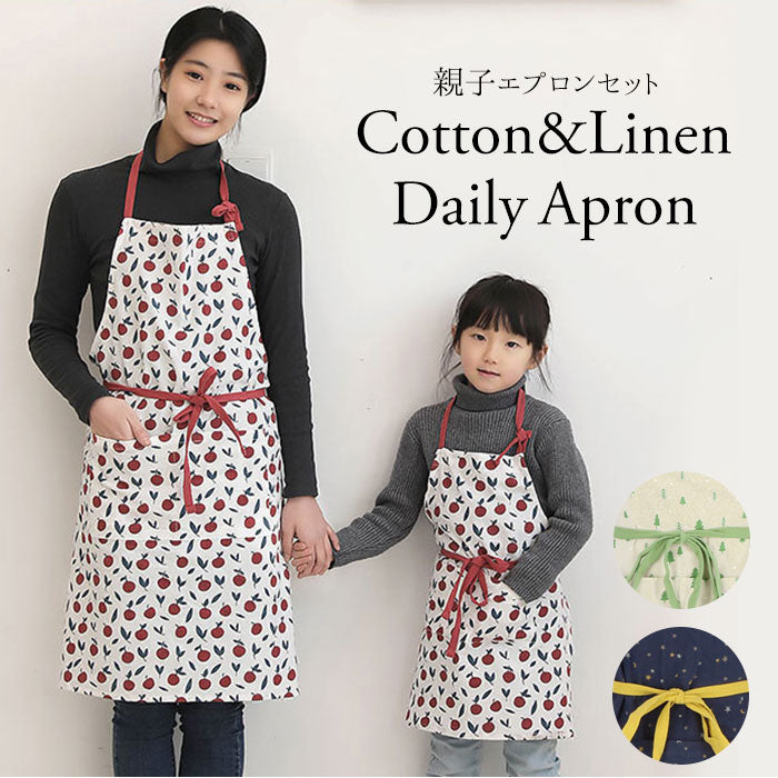 ・素朴な優しさが溢れるプリントが魅力!親子でお揃いで使えるエプロン。子ども用と大人用がセットで登場♪