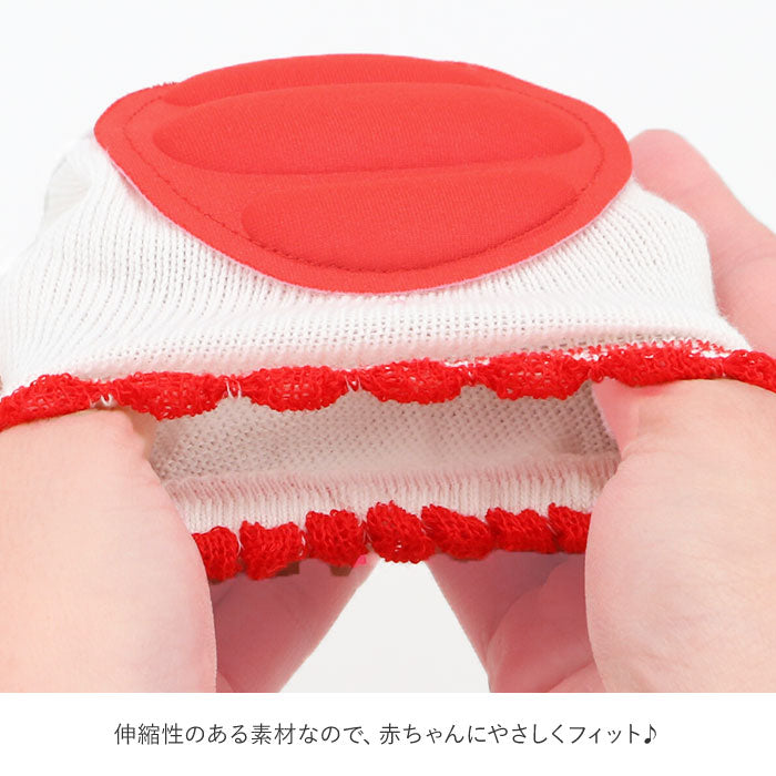 ・膝当て部分にはやわらかいニーパッド付き。伸縮性のある素材だから殆どの赤ちゃんにフィット。縁はギャザーがついていて、ズレにくい★