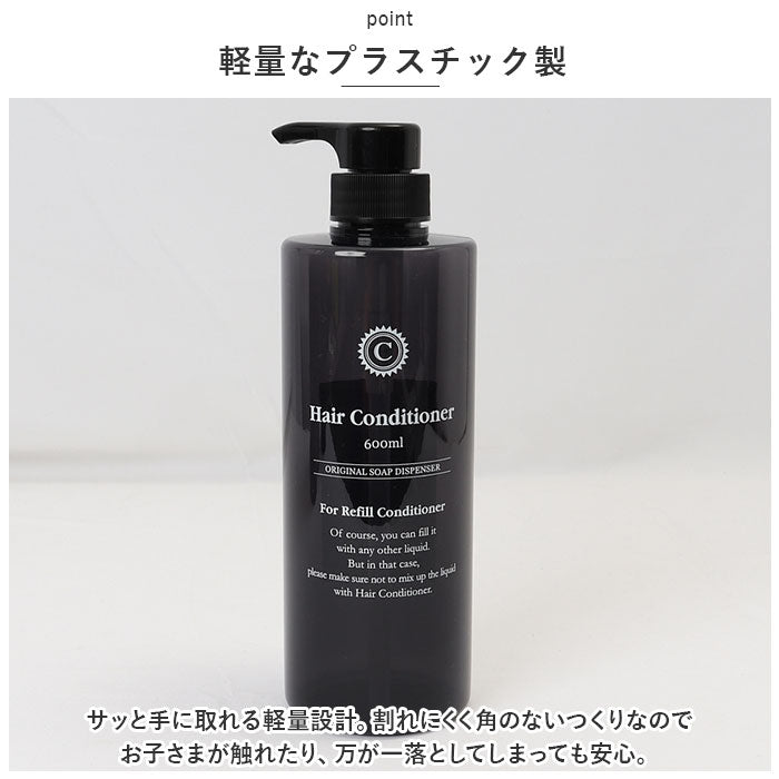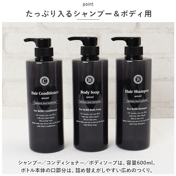 ・シャンプー/コンディショナー/ボディソープは、容量600ml。ボトル本体の口部分は、詰め替えがしやすい広めのつくり。