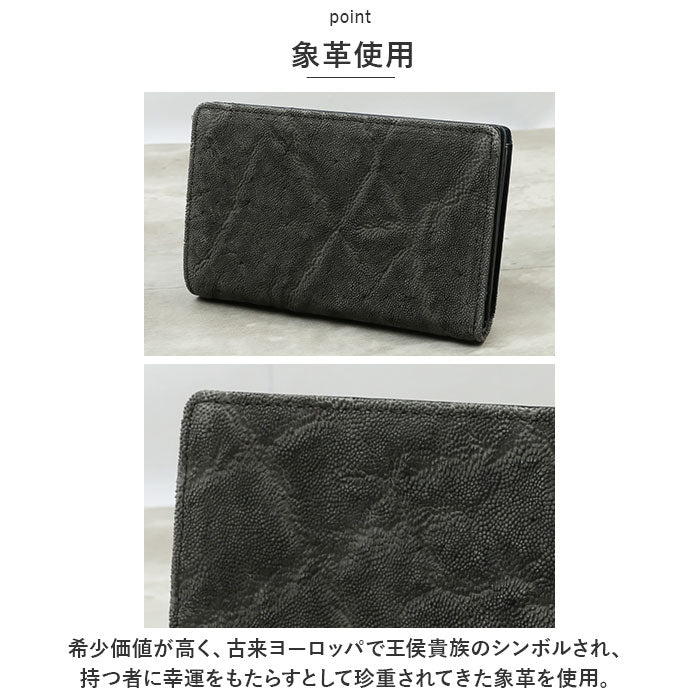 ・希少価値が高く、古来ヨーロッパで王侯貴族のシンボルされ、持つ者に幸運をもたらすとして珍重されてきた象革を使用。