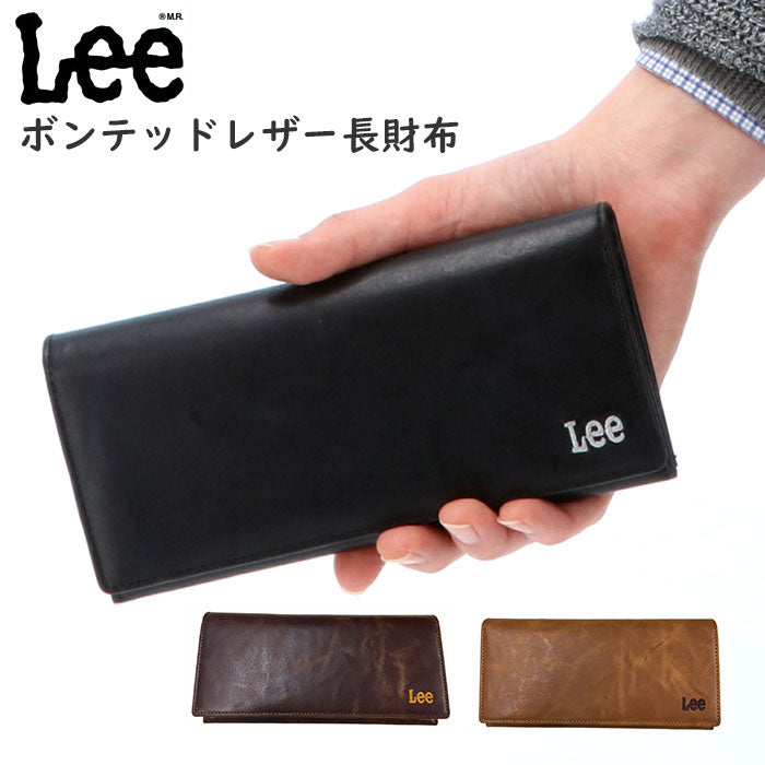 財布 メンズ 長財布 通販 ブランド Lee リー おしゃれ 二つ折り 2つ折り シンプル 無地 ロゴ 刺繍 小銭入れあり ボンデッドレザー 再生皮革 ロング ウォレット コインケース 新生活 入学祝い 進級祝い 誕生日 ギフト プレゼント
