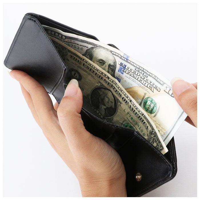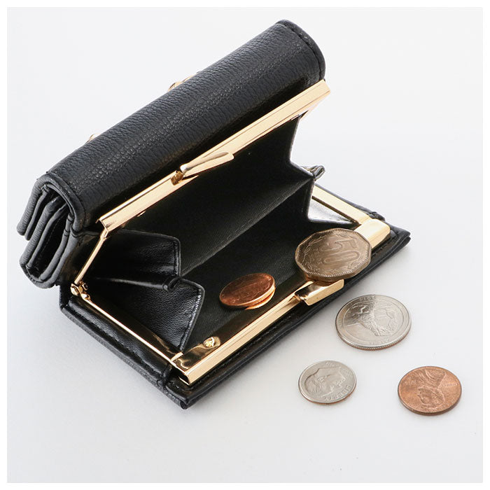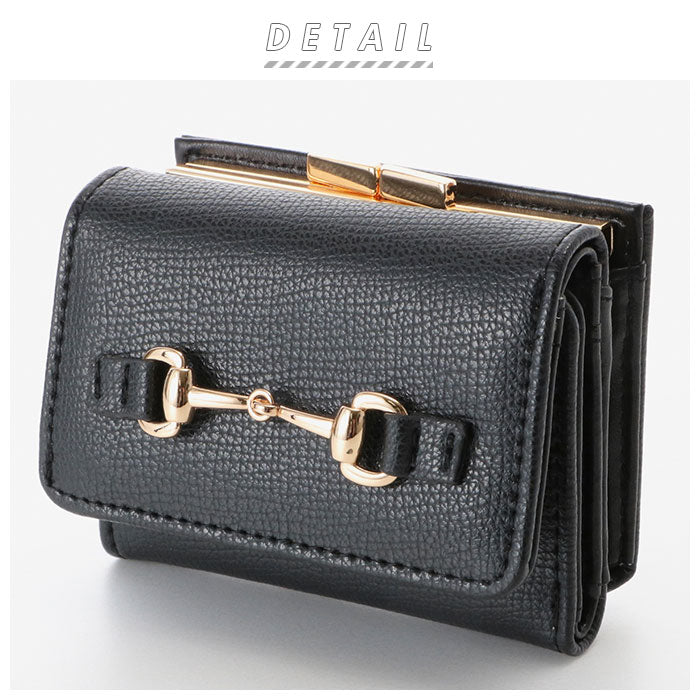 ・ゴールドカラーのビットがポイント!女性の手にちょうどよく収まる「がま口三つ折り財布」