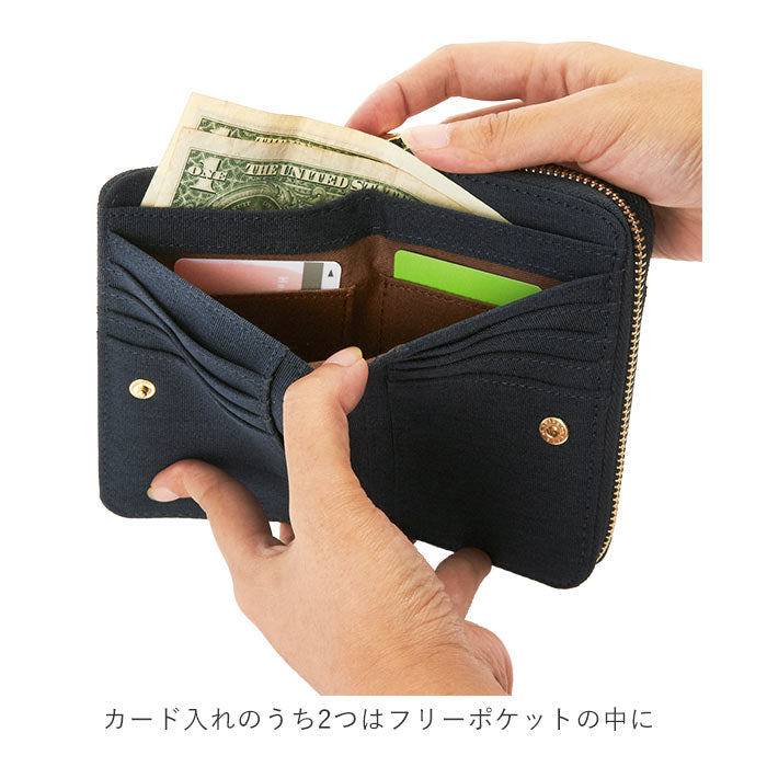 ・ラウンドファスナーで開く小銭入れは、ボックス型でガバっと開き、取り出しやすいのがポイント!
