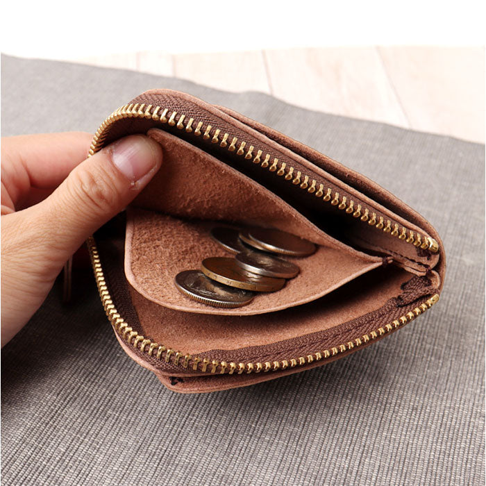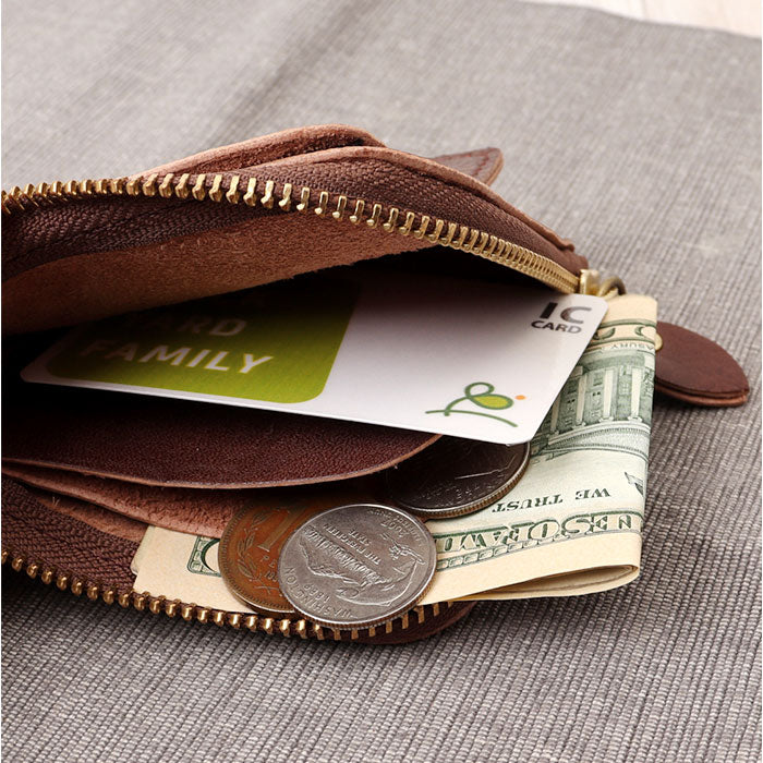 ・L字のファスナー内部は中央に小銭、両サイドにカードを入れられる合理的な設計。