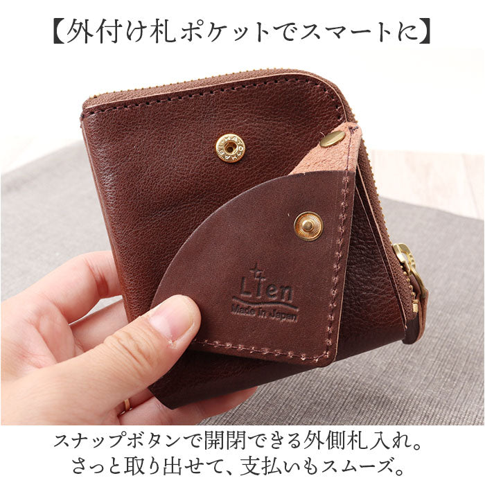 財布 二つ折り 本革 日本製 通販 二つ折り財布 2つ折り財布 折りたたみ財布 折り財布 本革財布 牛革財布 メンズ レディース 革 レザー カウレザー L字ファスナー コンパクト Lien リアン