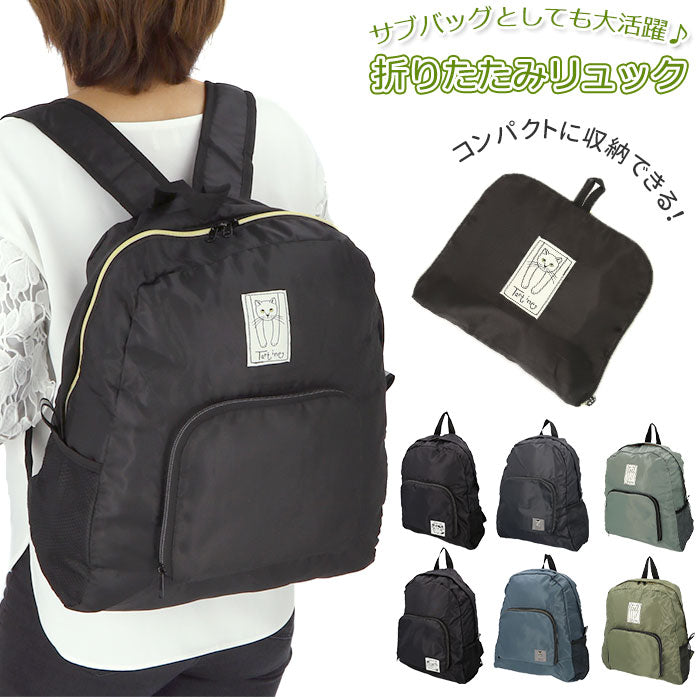 超軽量 折りたたみ リュック 通販 レディース タルティーヌ Tartine ねこのシャロン 軽量 軽い 折りたたみリュック 折り畳みバッグ かわいい おしゃれ シンプル 携帯 持ち運び 旅行