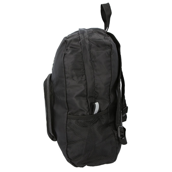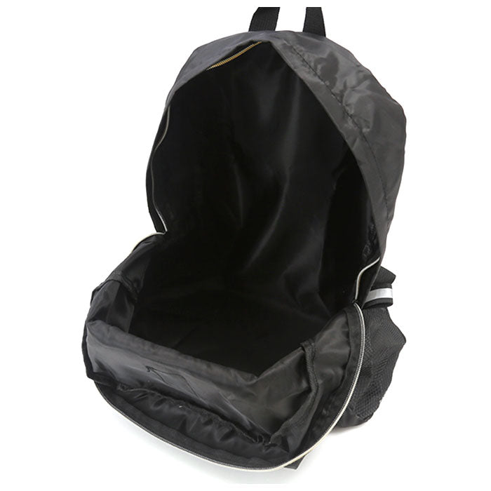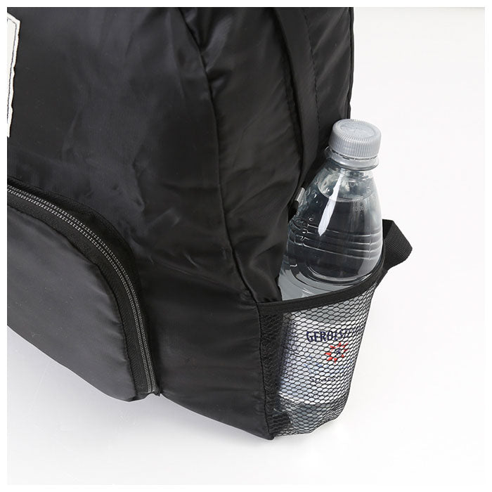 ・両サイドにはメッシュ素材のオープンポケット付き。ペットボトルや折りたたみ傘の収納に最適。