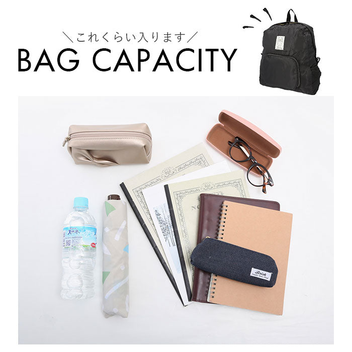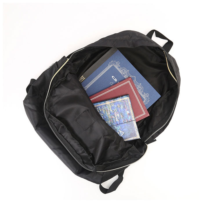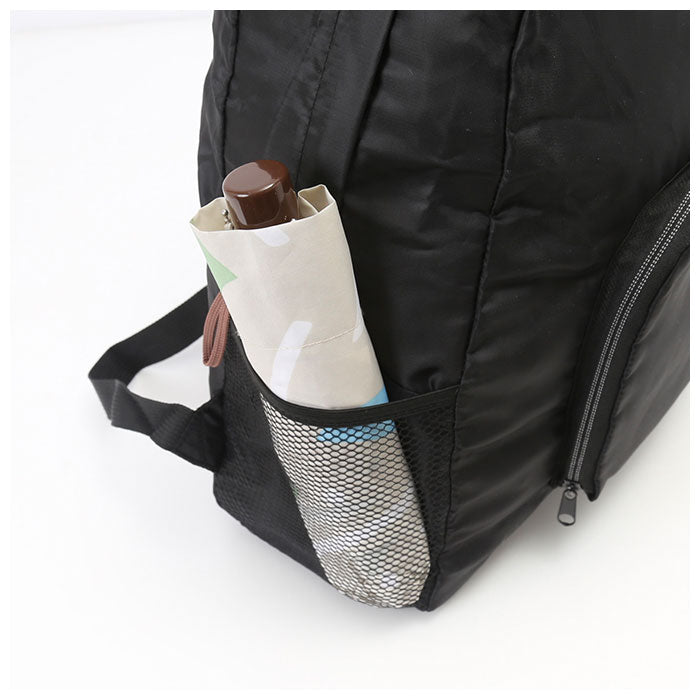 ・外ポケットのファスナーを開き、内側に折りたたんでファスナーを閉じればコンパクトに収納可能!急に荷物が増えた時のサブバッグとしても大活躍♪