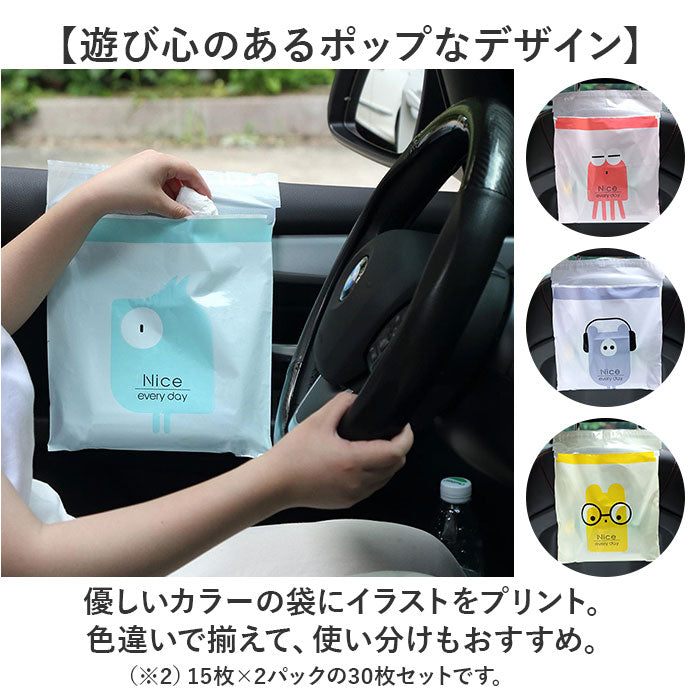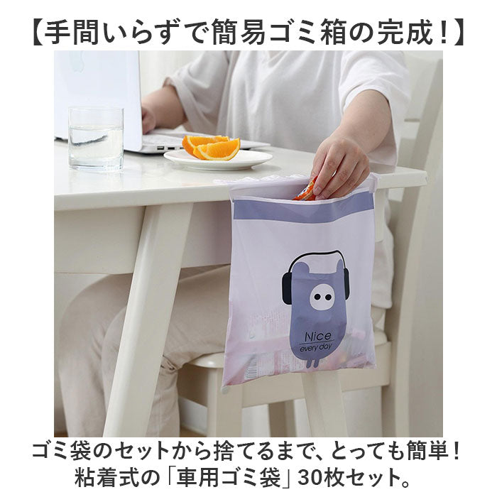 車内 ゴミ袋 30枚 通販 キッチン ゴミ 袋 使い捨てゴミ袋 ポリ袋 31×25cm エチケット袋 嘔吐 便利グッズ 車内グッズ 便利 粘着式 かわいい 小さめ 車内アクセサリー 車用品