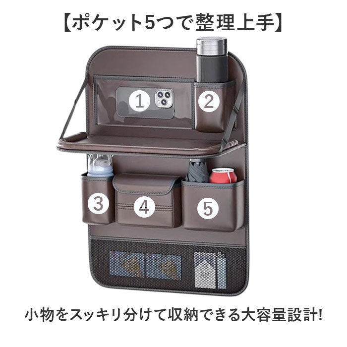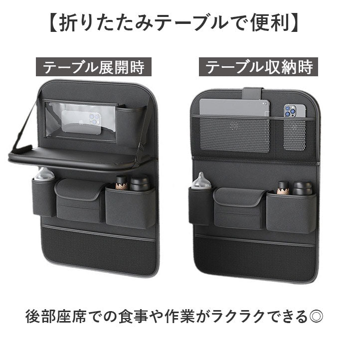 車用収納ポケット テーブル付き 大容量