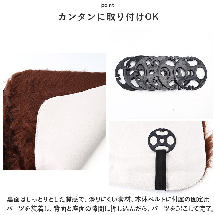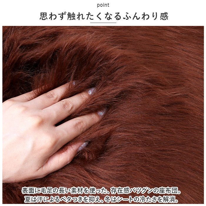 ・表面に毛足の長い素材を使った、存在感バツグンの座布団。夏は汗によるベタつきを抑え、冬はシートの冷たさを解消。