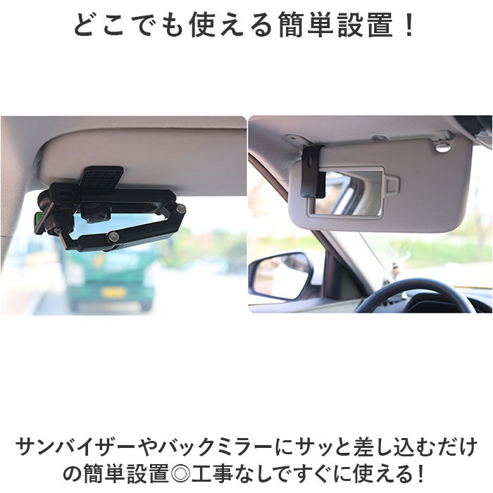 ・サンバイザーやバックミラーにサッと差し込むだけの簡単設置◎工事なしですぐに使える!